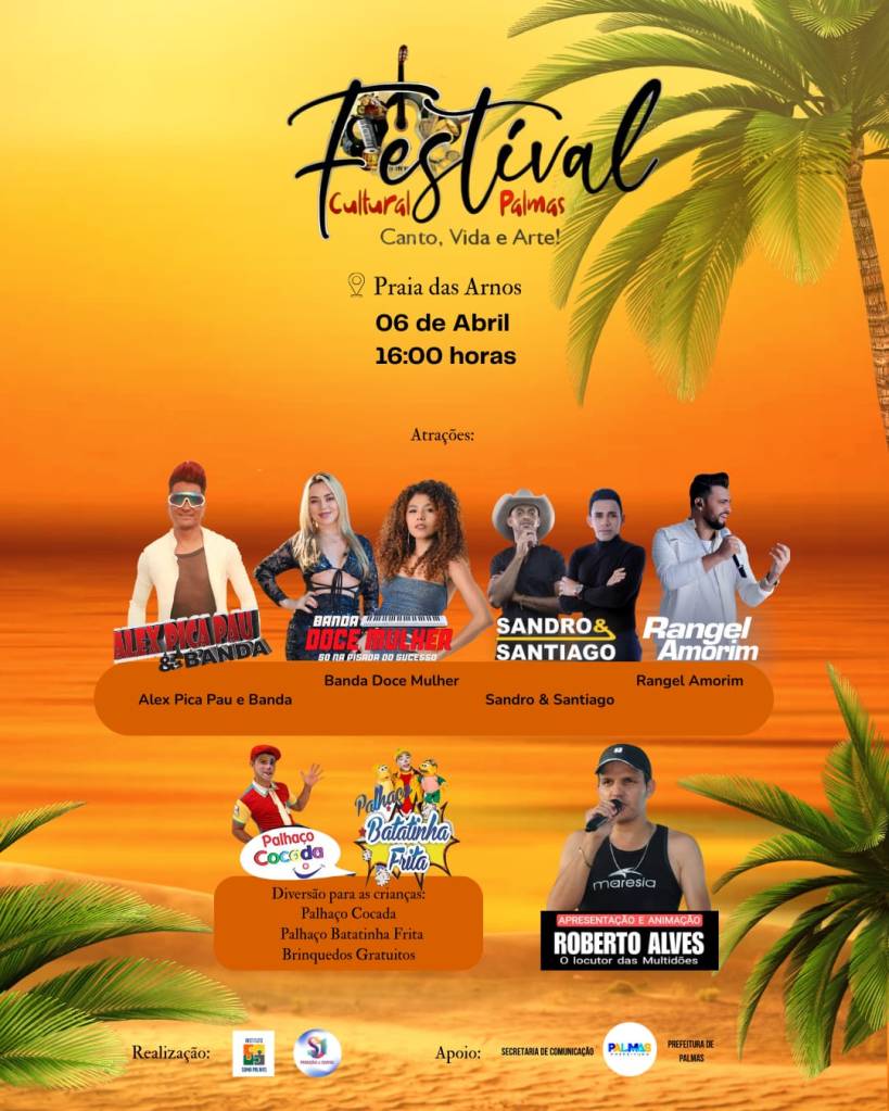 No próximo dia 6 de abril, a Praia das Arnos receberá a 5ª edição do Festival Palmas Canto, Vida e Arte, um dos principais encontros culturais da capital. Promovido pelo Instituto Soma Palmas, com apoio da Secretaria de Comunicação e da Prefeitura de Palmas, o evento promete celebrar a diversidade artística e musical do Tocantins.