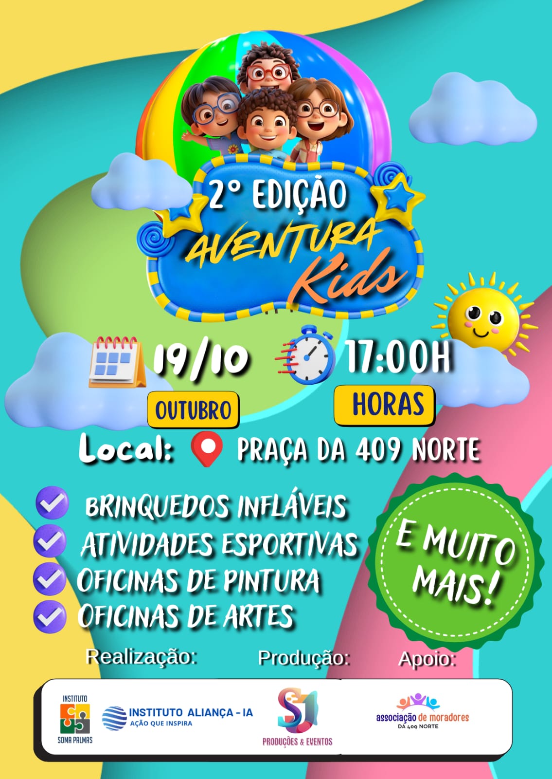 O mês de outubro começa com muita animação para as famílias palmenses com a chegada da 2ª edição do Aventura Kids, um evento gratuito e itinerante pensado especialmente para o público infantil. A proposta é proporcionar um dia inteiro de atividades lúdicas, esportivas e culturais em diferentes regiões da capital, fortalecendo o acesso ao lazer e à convivência comunitária.